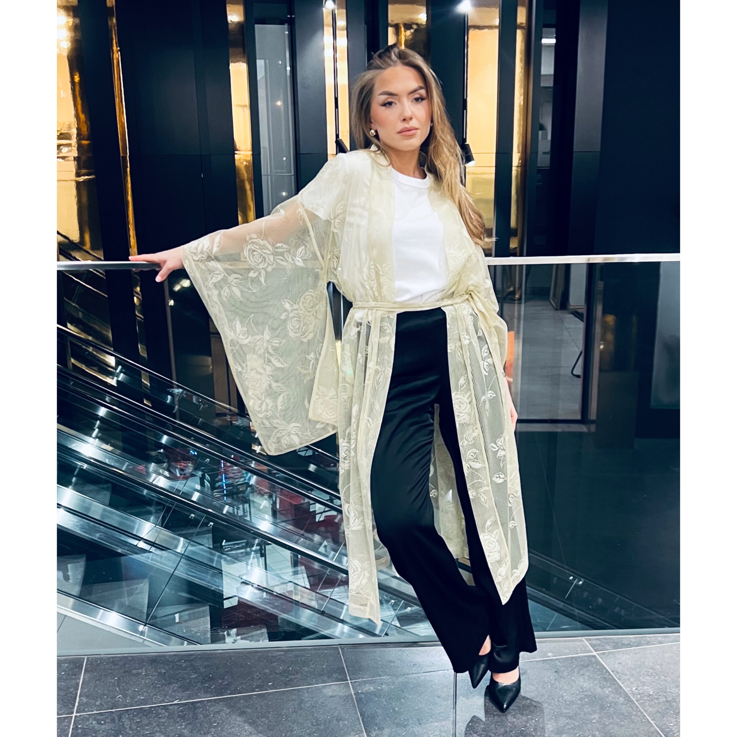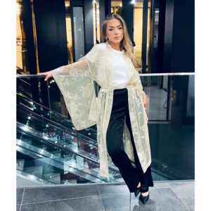 - Vyöllä sidottuna korostaa siluettia, avoimena laskeutuu kevyesti ja vapaasti.
